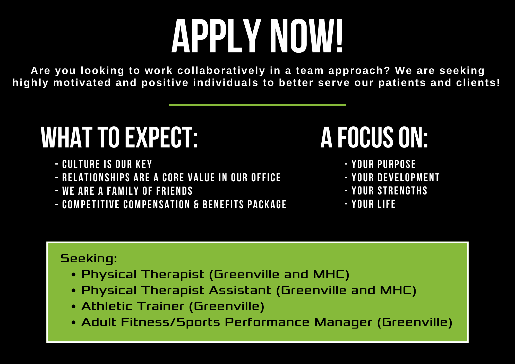 Kevin and Jennifer opened their first clinic, Youngs Physical Therapy & Sports Rehab, in Greenville, NC in October of 2012. The 1,650 sq. ft. space was an ideal starting point, but Kevin knew it was not his ultimate vision.